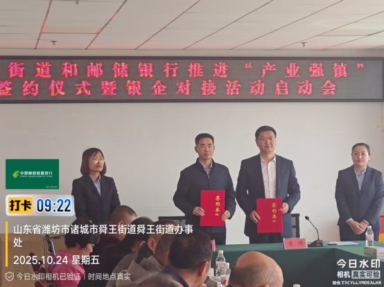 为更精准、更高效地服务舜王街道的“产业强镇”战略,邮储银行潍坊市分行诸城市支行于2025年10月24日和舜王街道共同举办了“产业强镇”签约仪式暨政银企对接会。舜王街道14处社区书记参会,同时邀请了当地20家小微企业参会。会议结束后,现场邮储银行诸城市支行已与5家企业达成合作协议,预计授信金额1000万元,并将以此为契机为更多的企业主提供服务。